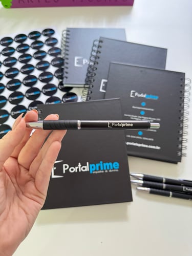Caneta e cadernos personalizados para kit especial
