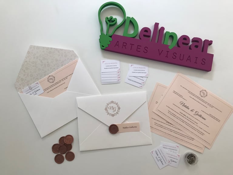 Papelaria personalizada com materiais de embalagem